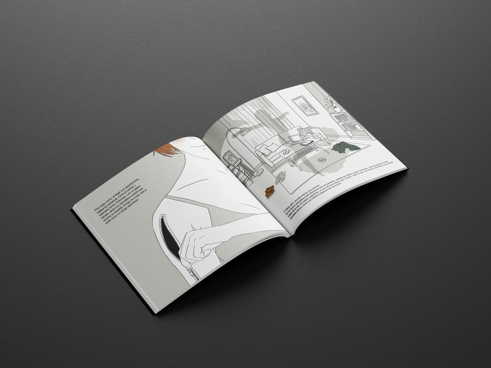 En este proyecto, mi trabajo ilustrativo busca equilibrar lo poético y lo narrativo. Las composiciones se apoyan en una paleta contenida y en líneas limpias que evocan la quietud de la ciudad y la dualidad de su protagonista. La sombra y la luz no solo son elementos visuales, sino también emocionales: reflejan el contraste entre la uniformidad exterior y la vida interior que todos guardamos.